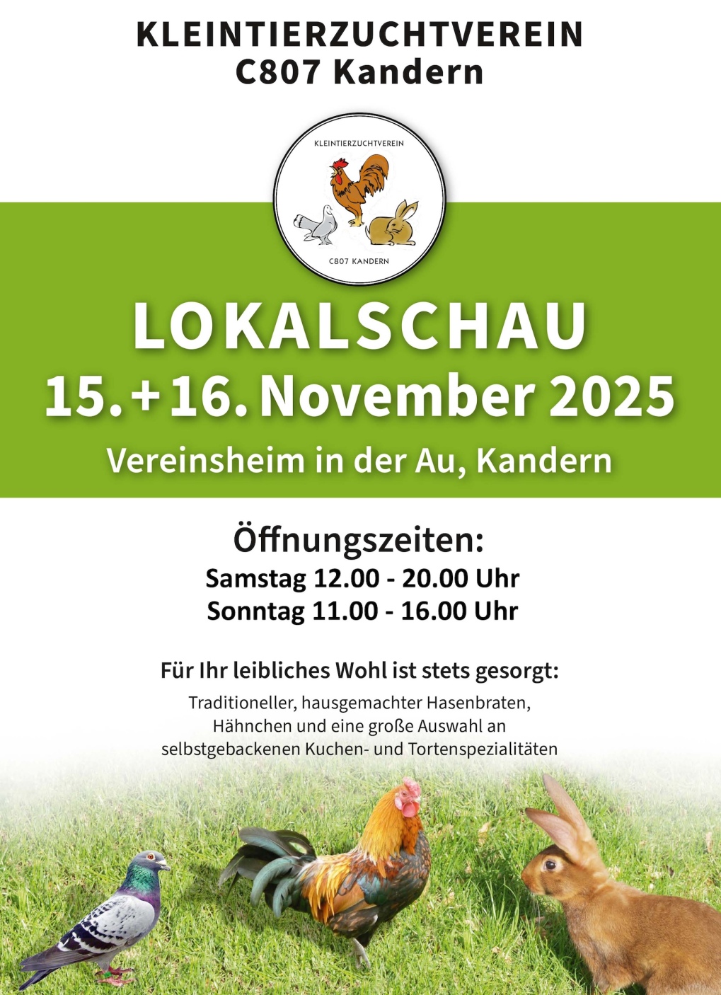 Willkommen beim Kleintierzuchtverein C807 Kandern! Bitte beachten sie die aktuell gültigen Regelungen für den Kleintiermarkt! nächster Kleintiermarkt findet am 8. November 2025 statt Jeden 1. Samstag im Monatg findet unser Kleintiermarkt statt (außer Januar und Februar) Wir laden herzlich zu unserer Lokalschau am 15. und 16. November 2025 ein. | ![]() |